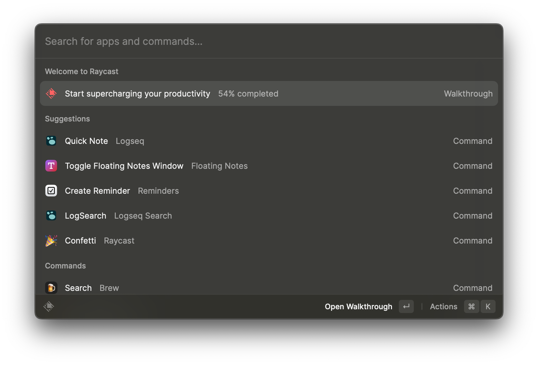 Another great MacOS utility I picked up recently was Raycast, a recommendation on Installer, the great newish newsletter from The Verge. It's like Spotlight with an App Store. It's got oodles of prewritten plugins that work great. I've been using it to rapidly lash notes into Logseq, update JIRA tickets, jot down wee notes. Hopefully when (if!?) life calms a little I'll probe its other offerings.